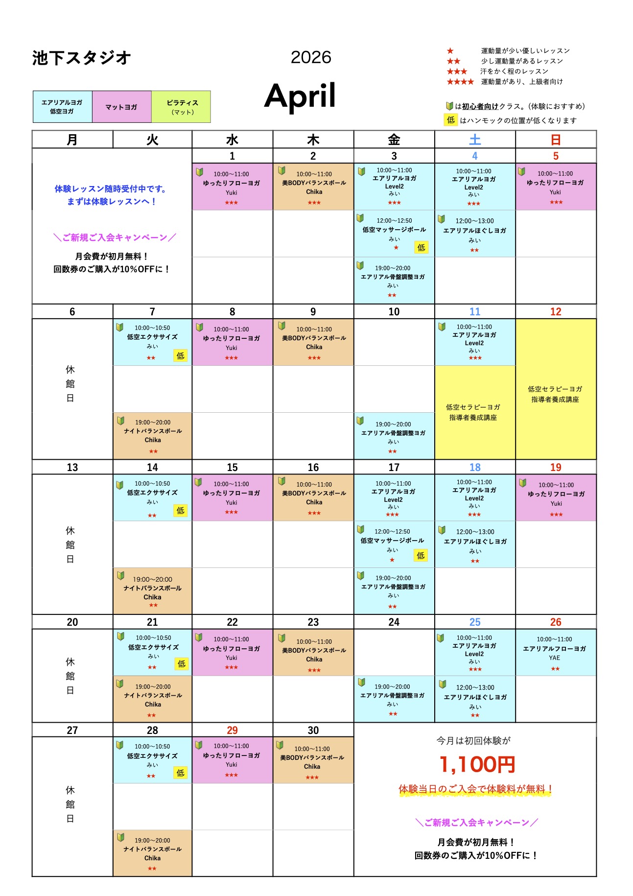 4月スケジュールのお知らせ