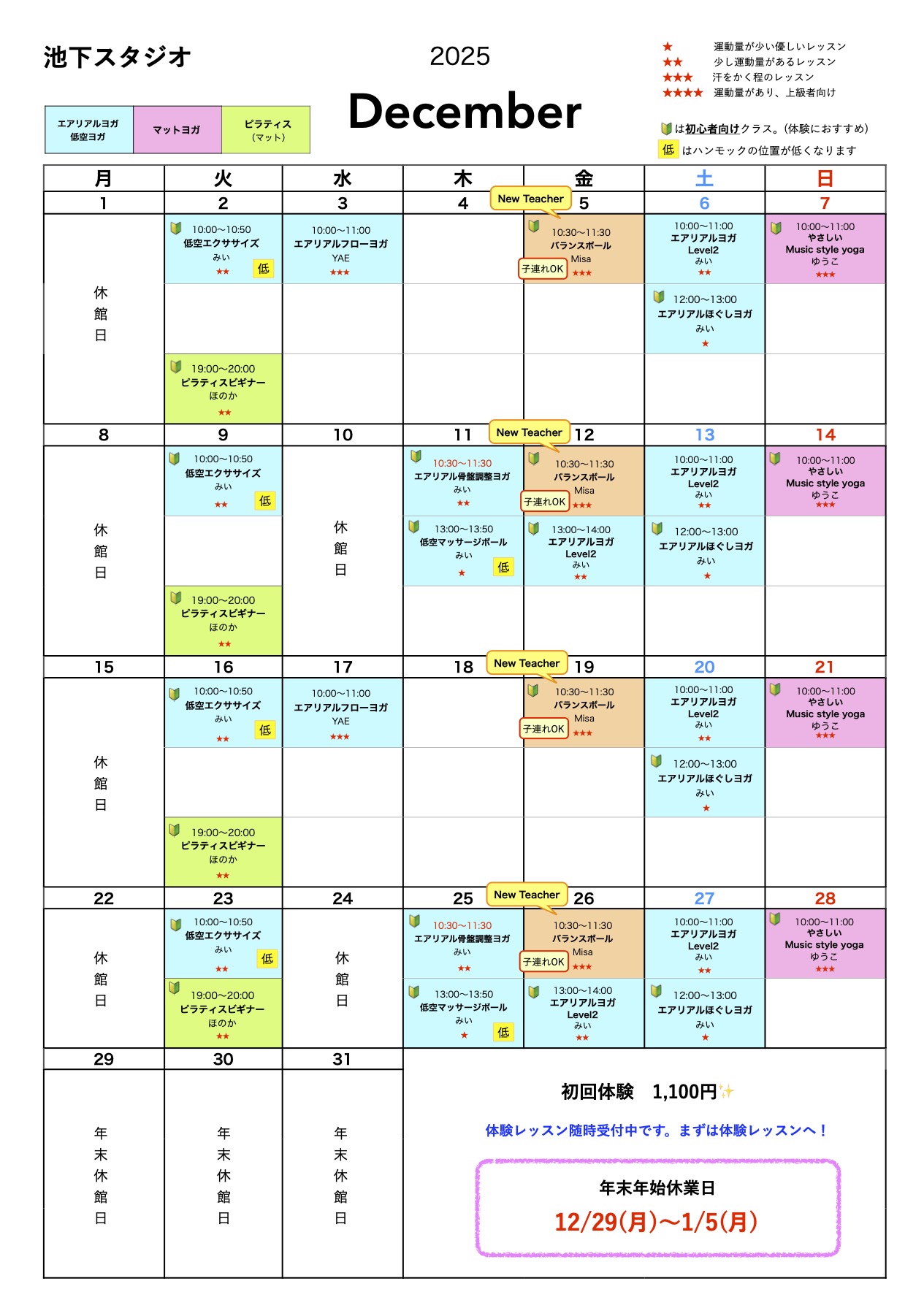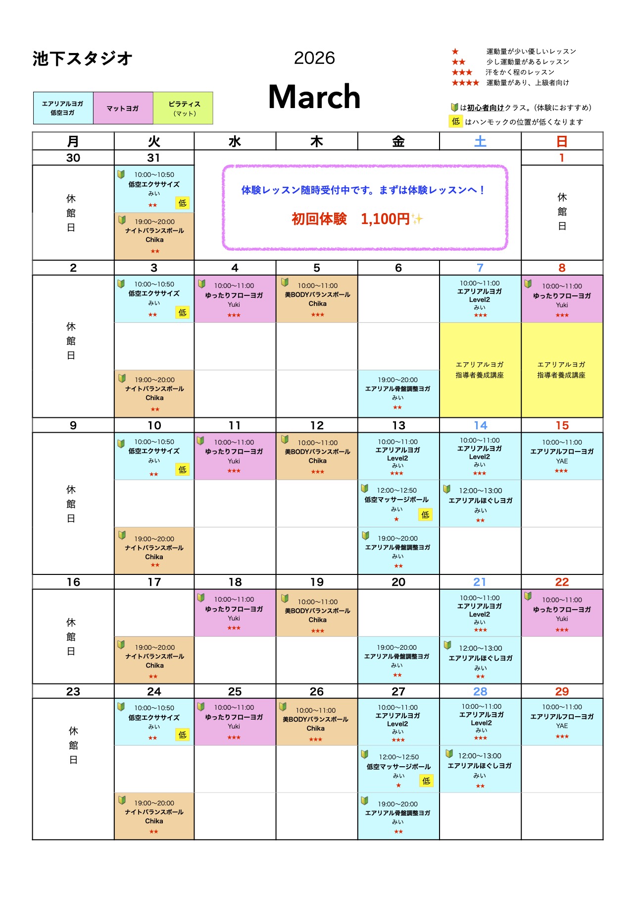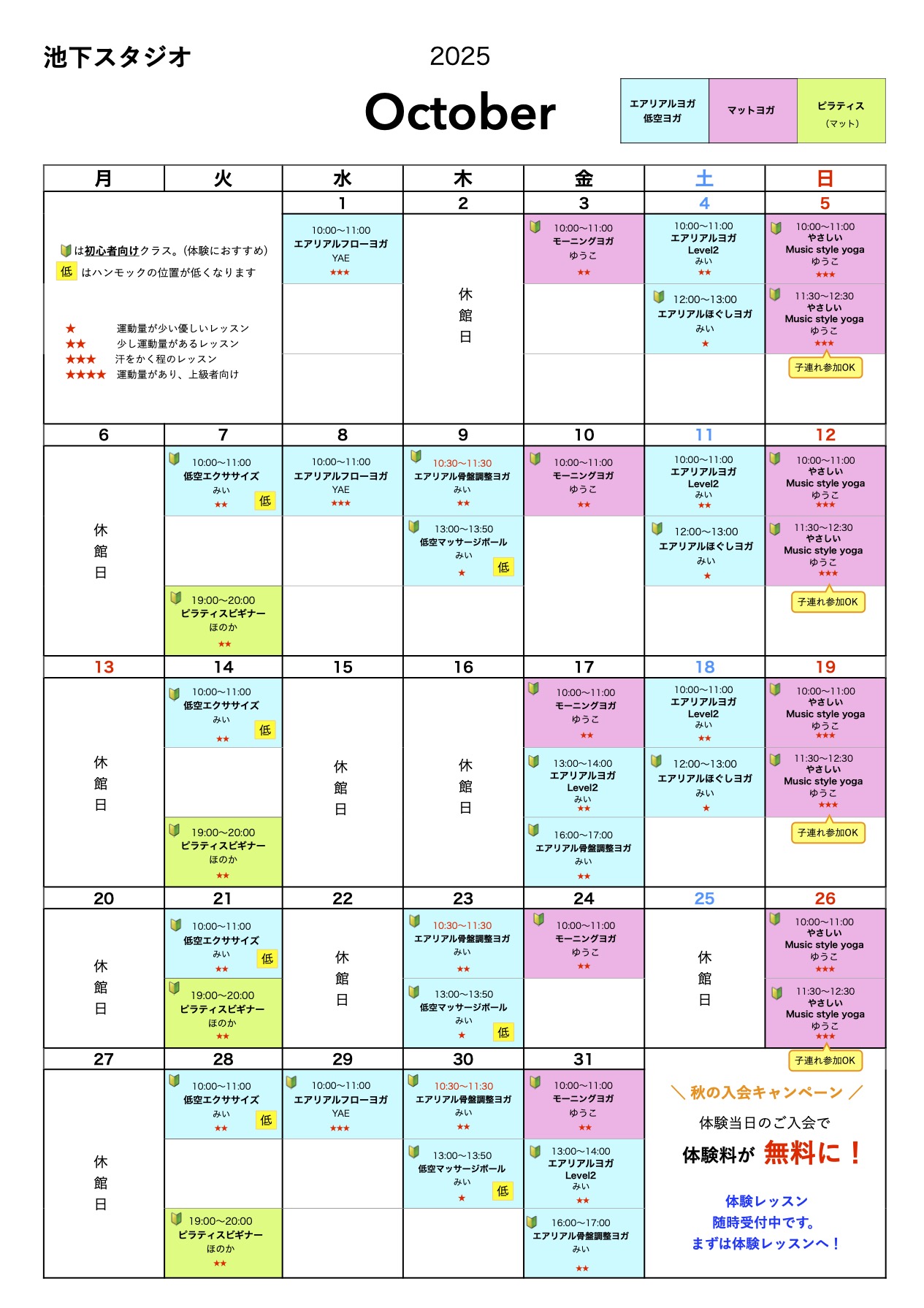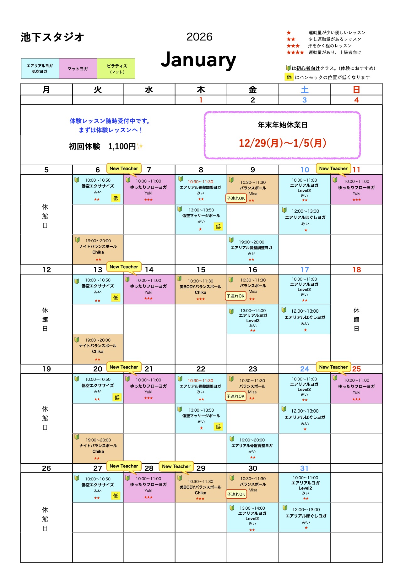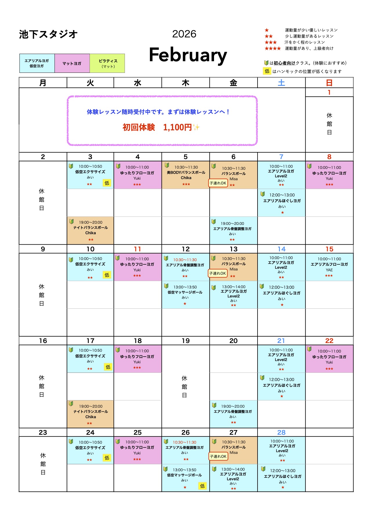 🔰マークのレッスン、または運動量★1つのレッスンがお勧めです。